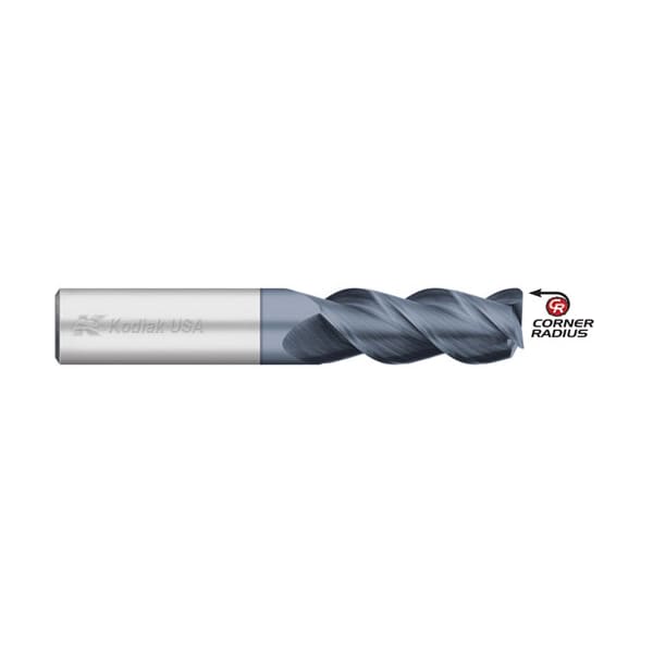 These Kodiak Cutting Tools® 3 flute 45° end mills are designed to slot and profile at higher speeds and feeds while providing a shearing action that produces excellent finishes. Works well in stainless steel and other similar alloys