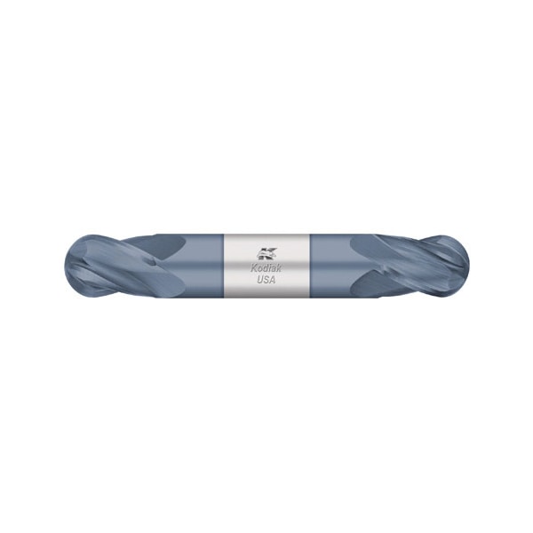 These Kodiak Cutting Tools® ball end four flute double end stub length carbide end milling cutters feature a 30 helix angle and are center cutting for plunging, slotting and profiling. As with all of our solid carbide tools, these end mills are manufactured using state-of-the-art machinery, manufacturing processes and inspection techniques, making them the preferred choice of carbide endmills for machinists wanting to produce high quality parts with maximum tool life. The addition of our ALTiN coating allows for increased speeds & feeds as well as longer tool life