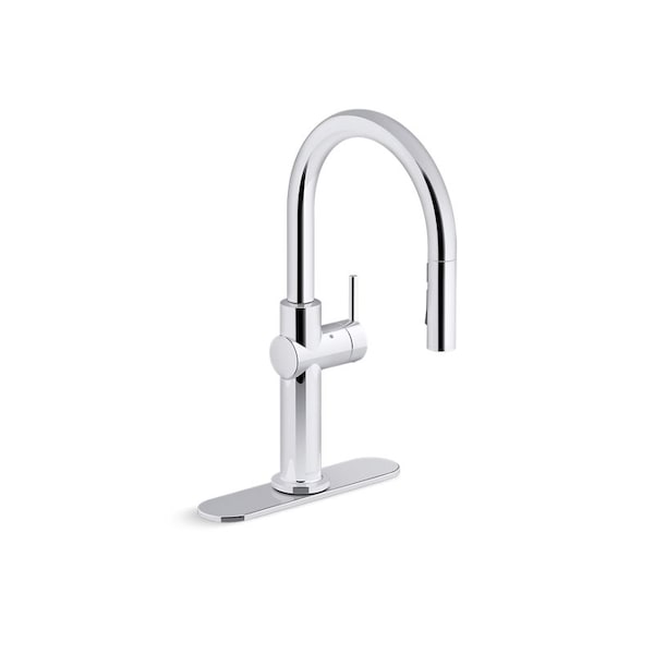 A model of clean, sophisticated design, the Crue kitchen faucet collection represents a true high point in user-focused plumbing design for the kitchen. The silhouette — a simple arched spout and single lever handle — offers a straightforward style that adapts to nearly any kitchen design. It’s this contemporary look, paired with thoughtful functionality, that makes the Crue collection a modern marvel.
