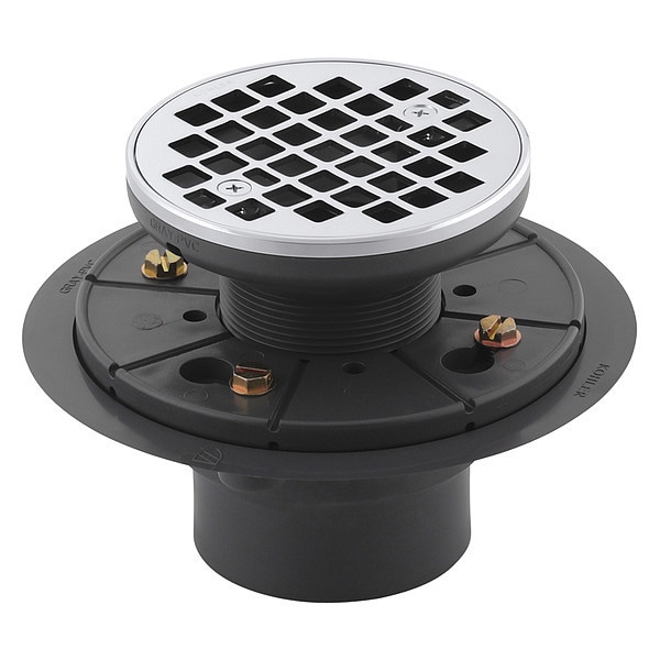 Shower Drain, Standards ASME A112.18.2, CSA B125.2, Connection Thread Type Not Applicable, Flange Diameter 5 3/8 in, Height Above Flange 2 11/16 in, Includes Strainer No, Includes Grate Yes, Nominal Pipe Size 3 in, Pipe Outside Diameter 2 3/8 in, Drain Material Brass, Plastic, Includes Not Applicable, Connection Type Threaded, Ligature Resistant Not Ligature-Resistant, Body Height 4 1/4 in, Product Type Shower Drain, Drain Style Round, Grate Material Brass, Grate Color Silver