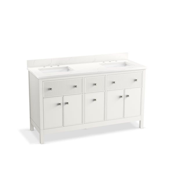 60 in. Bathroom Vanity Cabinet With Sinks And Quartz Top in White