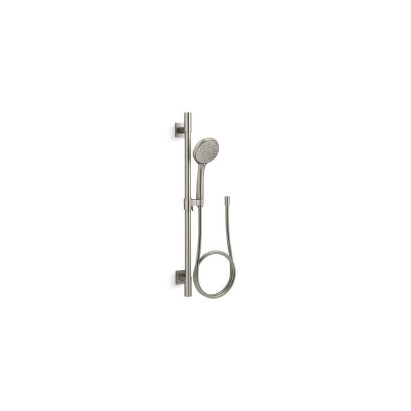 This all-in-one kit includes the Awaken B110 1.75-gpm multifunction handshower, a 24-inch slidebar, and a 60-inch smooth hose. Advanced spray performance delivers four distinct sprays - wide coverage, intense drenching, targeted massage, or reduced-flow spray - with a smooth rotation of a thumb tab. Ergonomic design makes for superior comfort and ease of use, with ideal balance and weight in the hand. The artfully sculpted sprayface takes its inspiration from the purposeful patterns found in nature, complementing a wide range of bathroom styles.