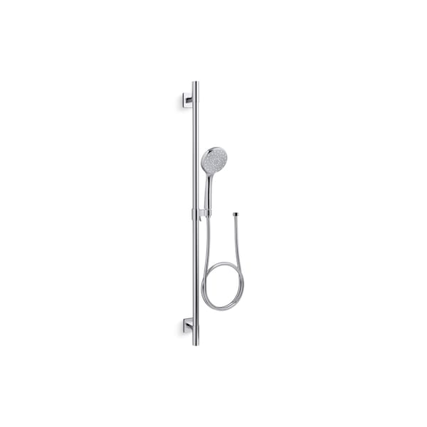 This all-in-one kit includes the Awaken B110 1.75-gpm multifunction handshower, a 36-inch slidebar, and a 60-inch metal hose. Advanced spray performance delivers four distinct sprays - wide coverage, intense drenching, targeted massage, or reduced-flow spray - with a smooth rotation of a thumb tab. Ergonomic design makes for superior comfort and ease of use, with ideal balance and weight in the hand. The artfully sculpted sprayface takes its inspiration from the purposeful patterns found in nature, complementing a wide range of bathroom styles.