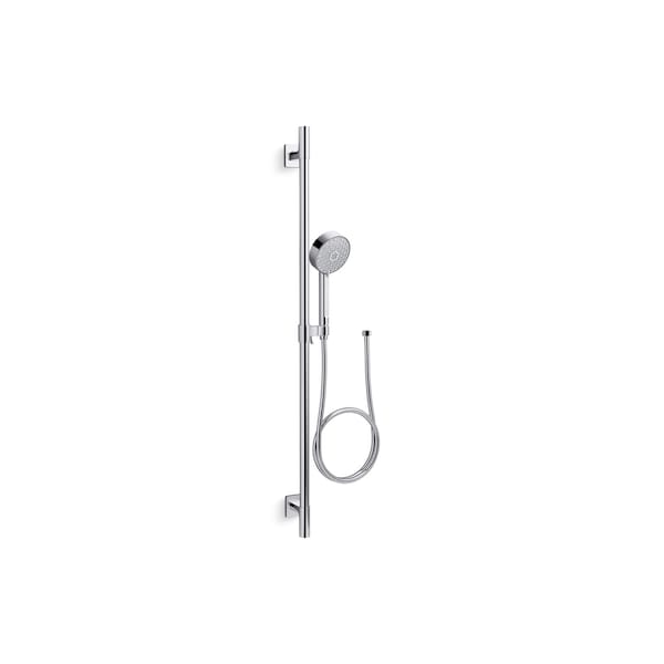 This all-in-one kit includes the Awaken G110 1.75-gpm multifunction handshower, a 36-inch slidebar, and a 60-inch metal hose. Advanced spray performance delivers four distinct sprays - wide coverage, intense drenching, targeted massage, or reduced-flow spray - with a smooth rotation of a thumb tab. Ergonomic design makes for superior comfort and ease of use, with ideal balance and weight in the hand. The artfully sculpted sprayface reveals simple, architectural forms that complement contemporary and minimalist baths.