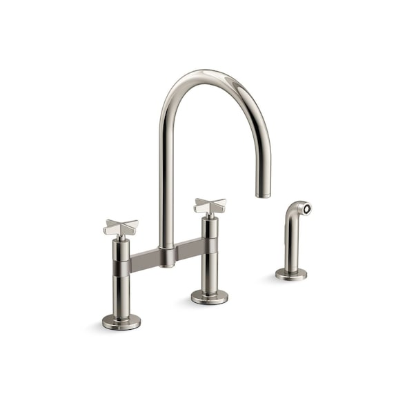 Billet Two-hole bridge kitchen sink faucet with side sprayer
