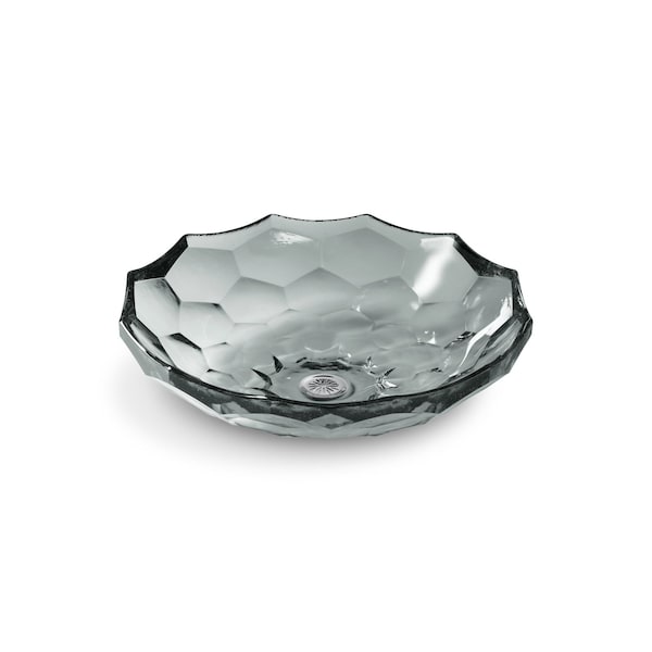 The Briolette glass sink displays a uniquely faceted shape inspired by the precisely cut surfaces of precious stone. Gently curved walls highlight the natural textural qualities of glass and create a striking reflective effect. This sink sits on top of the counter as a brilliant addition to your bath or powder room.