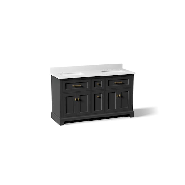 Charlemont 60" bathroom vanity cabinet with sinks and quartz top