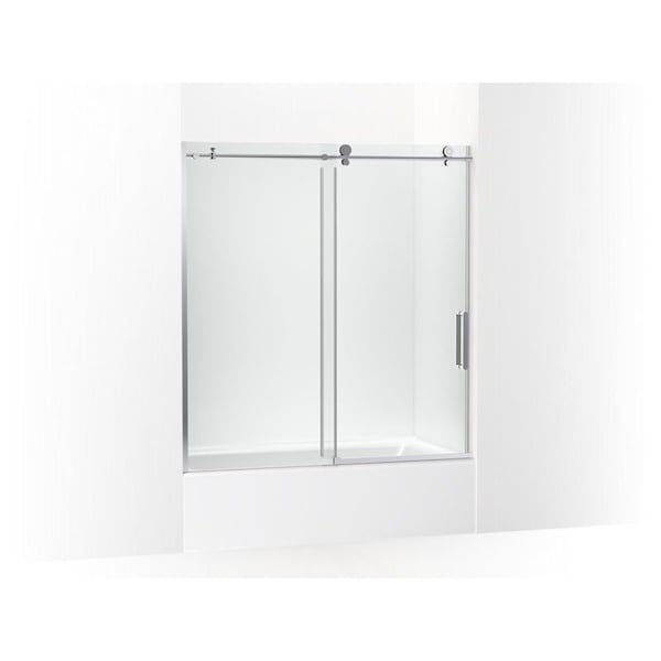Add the final touch to your showering space with the luxurious, frameless Composed sliding bath door. This contemporary design includes exposed rollers engineered to glide across a heavy-duty top rail, offering a bold style statement and smooth operation. The door offers ample head clearance and features beautiful back-to-back handles for easy entry and exit. This shower door includes heavy 3/8in thick tempered glass and Controlled Close technology on the sliding panel to securely close the door for exceptional water containment. Simple installation includes out-of-plumb adjustability of 3/8in on both the fixed and sliding glass panels.