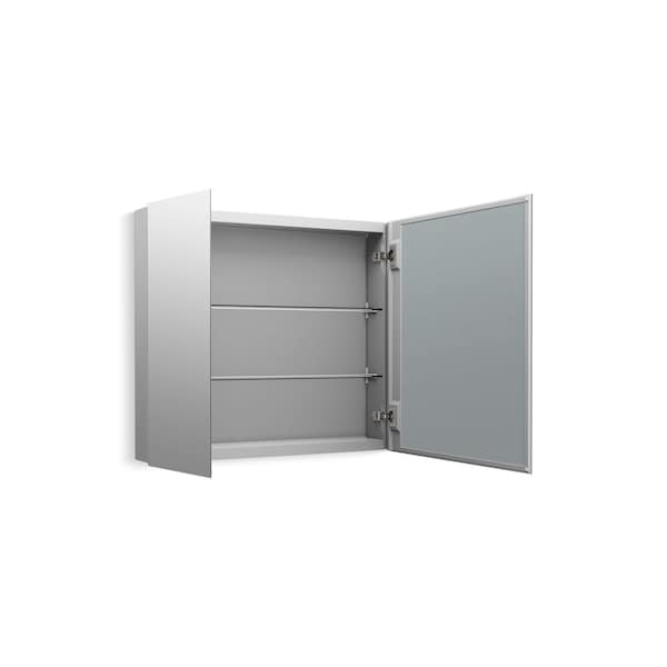 This Embark Slim 30in x 26in frameless medicine cabinet helps you put your best face forward. The dual front-door mirrors feature flat edges for enhanced styling. Inside, adjustable glass shelves easily accommodate your toiletries.