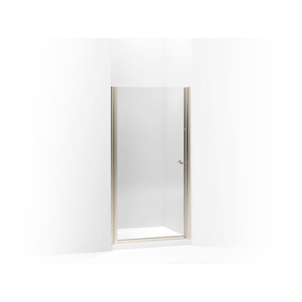 With a frameless, versatile design and Crystal Clear glass, the Fluence pivot shower door adds contemporary style to your shower. The door allows 1-1/2-inch adjustability for out-of-plumb installations and can be installed to open to the left or right to fit the layout of your room.