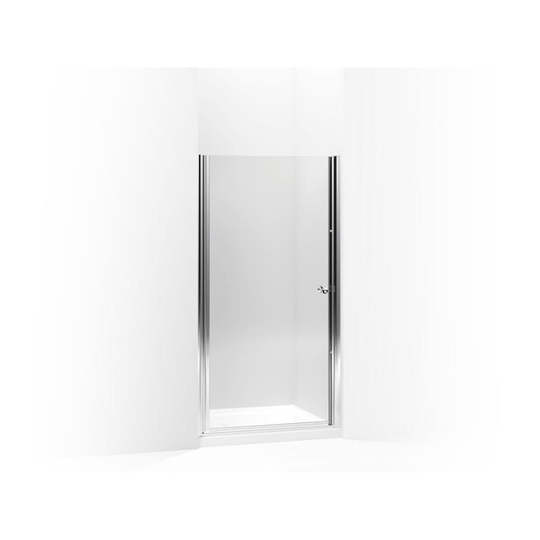 With a frameless, versatile design and Crystal Clear glass, the Fluence pivot shower door adds contemporary style to your shower. The door allows 1-1/2-inch adjustability for out-of-plumb installations and can be installed to open to the left or right to fit the layout of your room.