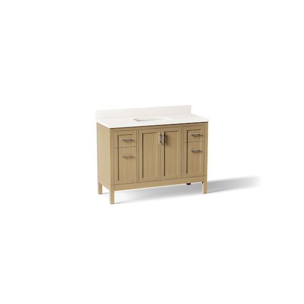 In typical Shaker style, the Hadron bathroom vanity set is a classic. Its modest, clean design doesn’t overpower your bathroom - it blends into it - lending itself to many decorating styles. The Hadron vanity set includes cabinet, quartz countertop, sink, and Vibrant Brushed Nickel hardware. Pair with any KOHLER widespread bathroom sink faucet for your own unique touch.