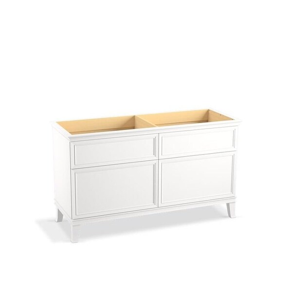 Elegant minimalist design meets midcentury traditional influence and Kohler craftsmanship in the Harken bathroom vanity. This simply ornamented, all-drawer cabinet features cornice molding, reminiscent of an American Federal-style bookcase, while flared solid-wood legs inspired by early nineteeth-century linen presses elevate the vanitys style and off-floor functionality. Customize your bathroom centerpiece with a coordinating quartz top, contrasting industrial-style drawer pulls, and organizational in-drawer accessories sold separatelyfor a look that fits your aesthetic and space.