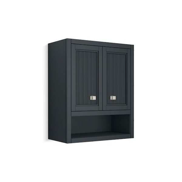 Neoclassical detailing embraces modern design and colors in the texturally captivating Hearthaven collection. Featuring ribbed panels inset on picture frame-like door molding, this wall cabinet is adorned with classic Vibrant Brushed Nickel hardware. One exposed shelf and an interior shelf offer plenty of storage space. Includes ready-to-install wall cabinet in your choice of color and Vibrant Brushed Nickel hardware. Additional hardware finishes are also available.