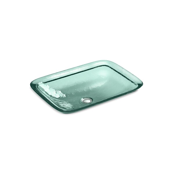 Made by American craftsmen using stunning pressed-glass construction, the Inia Wading Pool sink creates a soothing focal point in any bathroom or powder room. Its deep, generously sized basin helps minimize splashing, and the glass surface cleans up easily. The subtle hammered texture helps to conceal vanity items and fixtures from view.