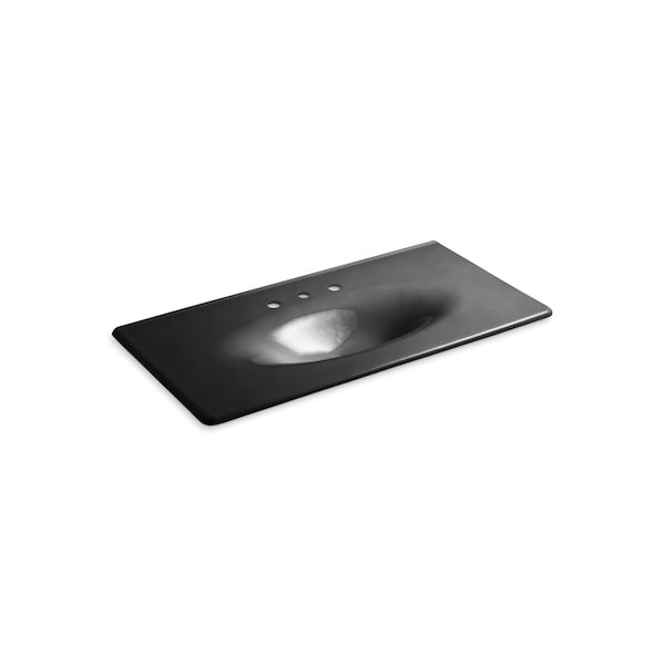 With its graceful curves, the Iron/Impressions sink adds elegance to the bathroom. The spacious rectangular countertop flows seamlessly into an elongated oval basin, creating a sophisticated design element that coordinates with 42-inch vanities. Enameled cast iron construction makes it durable and easy to clean.