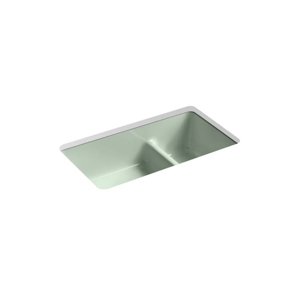 The KOHLER Iron/Tones sink offers a simple design that is equally at home in modern or traditional kitchens. The large/medium bowls allow you to keep clean and dirty dishes separate while offering plenty of room for oversize pots and pans. A low barrier divides the two compartments, making it easy to wash and rinse large items while still keeping the two basins separate. Crafted from enameled cast iron, this smart divide 33" top-/undermount double-bowl kitchen sink resists chipping, cracking, or burning for years of beauty and reliable performance.