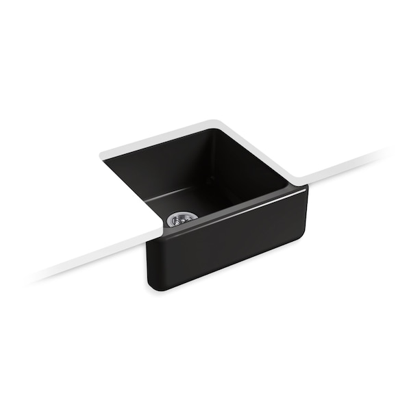 The Whitehaven apron-front kitchen sink features a streamlined and versatile farmhouse style to complement any decor. A large single basin accommodates pots and pans, while the sloped bottom helps with draining and cleanup. Crafted from enameled cast iron, this sink resists chipping, cracking, or burning for years of beauty and reliable performance. A standard apron front makes it easy to install on 24-inch apron-front cabinetry. The Self-Trimming design requires only a simple rough cut, overlapping the cabinet face for beautiful results.