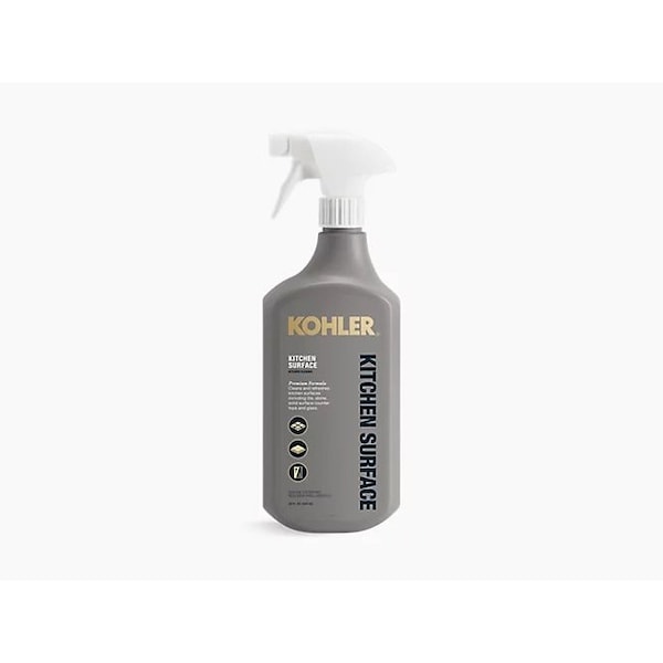 KOHLER premium formula kitchen surface cleaner cleans and refreshes kitchen surfaces, including tile, stone, solid surface counter tops and glass, leaving a streak-free shine.