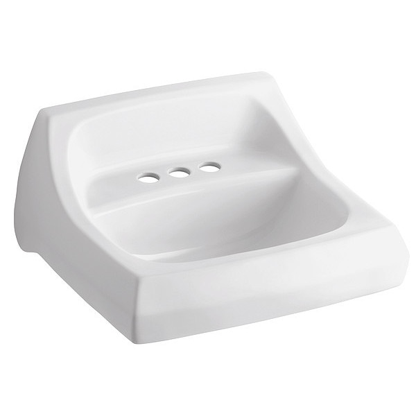 Lavatory Sink, Material Porcelain, Mounting Type Wall Hung, Overall Length 21-1/4 In., Overall Width 12-1/2 In., Overall Height 7-1/4 In., Bowl Size 16 In. x 10 In., Bowl Depth 3 In., ADA Compliant No, Bowl Shape Oval, Back Splash No, Drain Opening 1-3/4 In., Color White