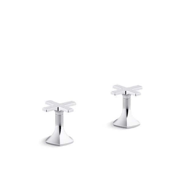 Unapologetically luxurious and truly unforgettable, Occasion bathroom faucets and accessories draw inspiration from 1960s Hollywood glamour and extravagance. Fashioned after the eras sleek dress lines and bold car designs, the Occasion collection reflects graceful elegance, blending classic midcentury and modern design. Customize your bath with the collections distinctive pentagonal accents, faceted bases, flowing lines, and delicate edges. Choose a spout, handles, and finish to build your own signature design. Pair these elegant, minimalist deck-mount cross bath faucet handles with your choice of Occasion bath spout for a look as fashionable as it is functional.