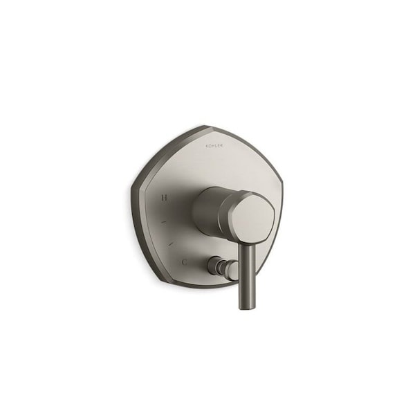 Unapologetically luxurious and truly unforgettable, Occasion bathroom faucets and accessories draw inspiration from 1960s Hollywood glamour and extravagance. Pair this sleek pentagonal Occasion Rite-Temp valve trim with lever handle and a Rite-Temp pressure-balancing valve with push-button diverter to maintain your desired water temperature during pressure fluctuations. Valve sold separately.