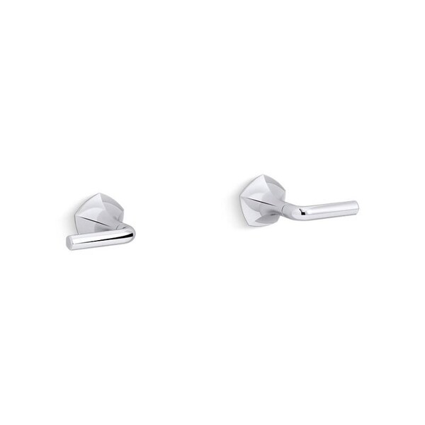 Unapologetically luxurious and truly unforgettable, Occasion bathroom faucets and accessories draw inspiration from 1960s Hollywood glamour and extravagance. Fashioned after the eras sleek dress lines and bold car designs, the Occasion collection reflects graceful elegance, blending classic midcentury and modern design. Customize your bath with the collections distinctive pentagonal accents, faceted bases, flowing lines, and delicate edges. Choose a spout, handles, and finish to build your own signature design. Pair these elegant, minimalist wall-mount sink faucet trim lever handles with the Occasion wall-mount bathroom sink faucet spout for a look as fashionable as it is functional. Valve sold separately.