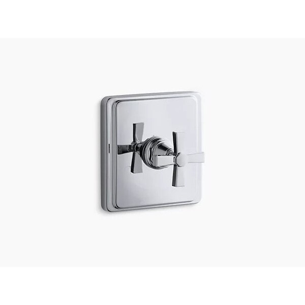 With its smooth, clean silhouette, Pinstripe Pure evokes a sense of relaxed luxury and vintage 1930s American style. This valve trim with bold cross handle is easy to operate, and features soft, clean edges for a bold accent in the shower. Pair this trim with a MasterShower thermostatic valve for precise water temperature.