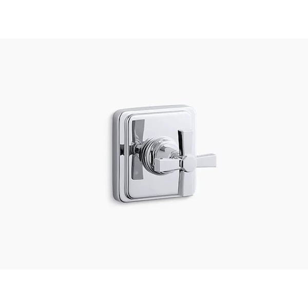With its smooth, clean silhouette, Pinstripe Pure evokes a sense of relaxed luxury and vintage 1930s American style. This valve trim with bold cross handle is easy to operate, and features soft, clean edges for a bold accent in the shower. Pair this trim with a MasterShower 2- or 3-way transfer valve to create a personalized shower experience.