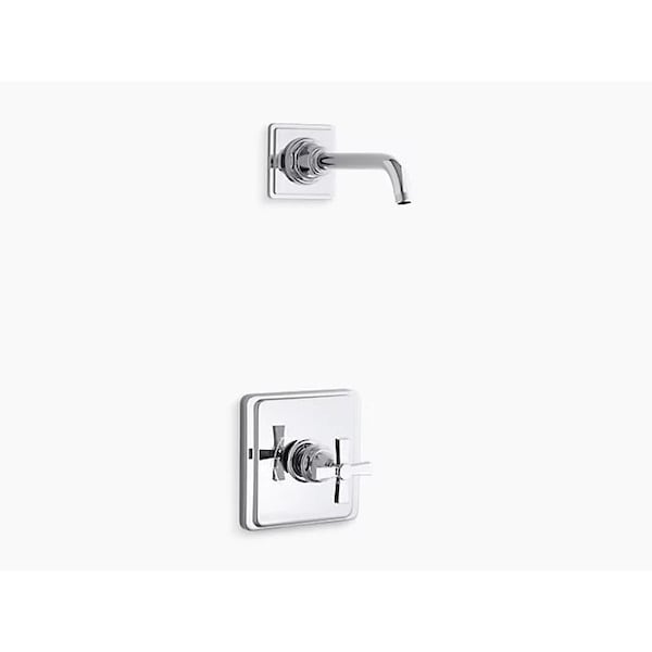 With its smooth, clean silhouette, Pinstripe Pure evokes a sense of relaxed luxury and vintage 1930s American style. This shower trim with cross handle creates a strong design statement in traditional to contemporary bathrooms. Pair this trim with a Rite-Temp pressure-balancing valve, which maintains your desired water temperature during pressure fluctuations.