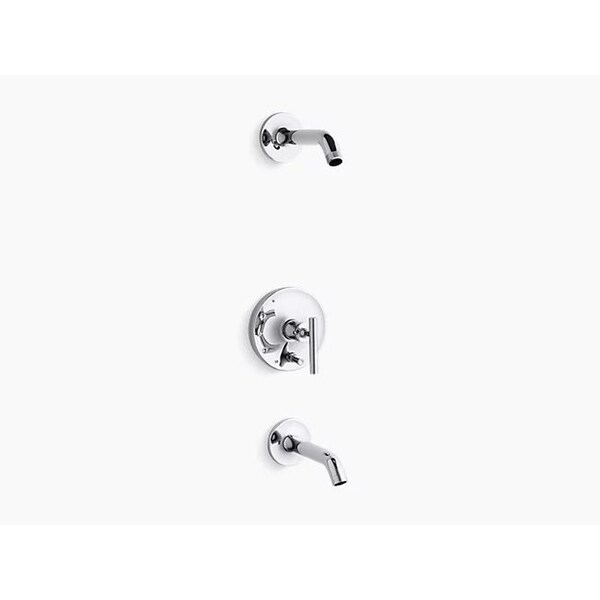 Purist faucets and accessories combine simple, architectural forms with sensual design lines. Featuring this modern, minimalist style, the Purist bath and shower trim creates a sophisticated, unified look with a lever handle and 35-degree bath spout. Pair this trim with a showerhead and a Rite-Temp pressure-balancing valve with push-button diverter, which maintains your desired water temperature during pressure fluctuations.