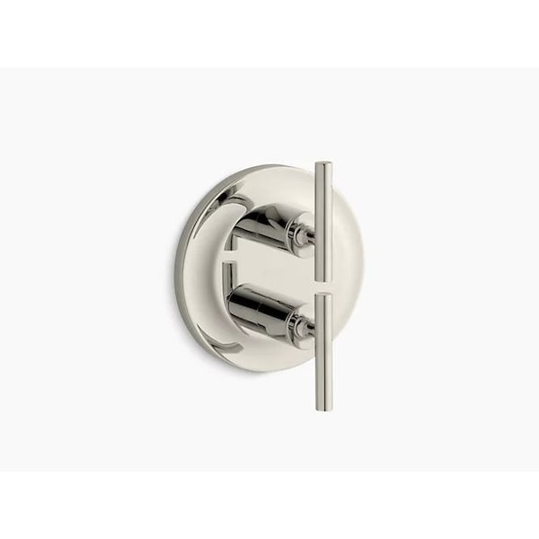 Purist faucets and accessories combine simple, architectural forms with sensual design lines and careful detailing. This valve trim echoes Purist's modern, minimalist style with a simple pair of stacked, ergonomic lever handles for easy control. Pair this trim with a MasterShower stacked thermostatic valve for precise water temperature.