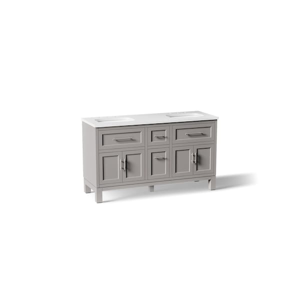 Quo 60" bathroom vanity cabinet with sinks and quartz top
