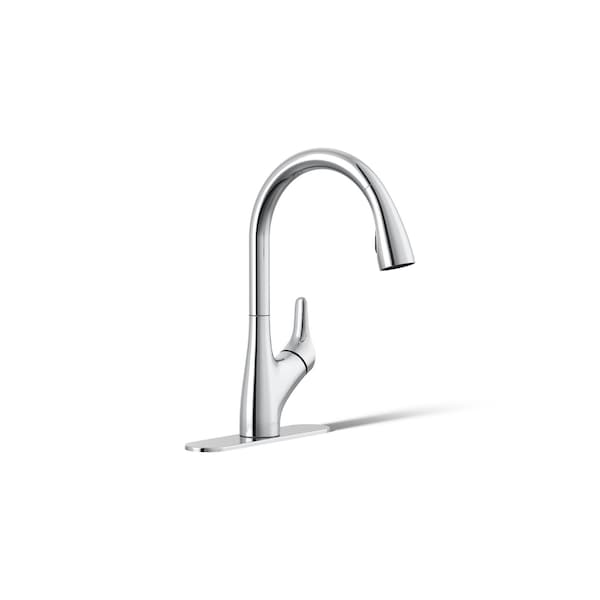 An innovative fit for a variety of kitchens and tasks, the KOHLER Rival pull-down kitchen faucet combines an elegant, universal design with exceptional ergonomics and functionality. The high-arch deck-mount kitchen faucet spout rotates 360 degrees and the MasterClean sprayhead smoothly maneuvers, giving you full range of motion. Even with wet, soapy hands, the sculpted buttons allow you to switch between aerated spray and the powerful Sweep spray. When the job is done, the DockNetik docking system allows you to lock the sprayhead in place.