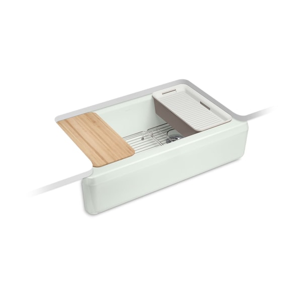 Riverby 35-3/4 undermount single-bowl farmhouse workstation kitchen sink Sea Salt