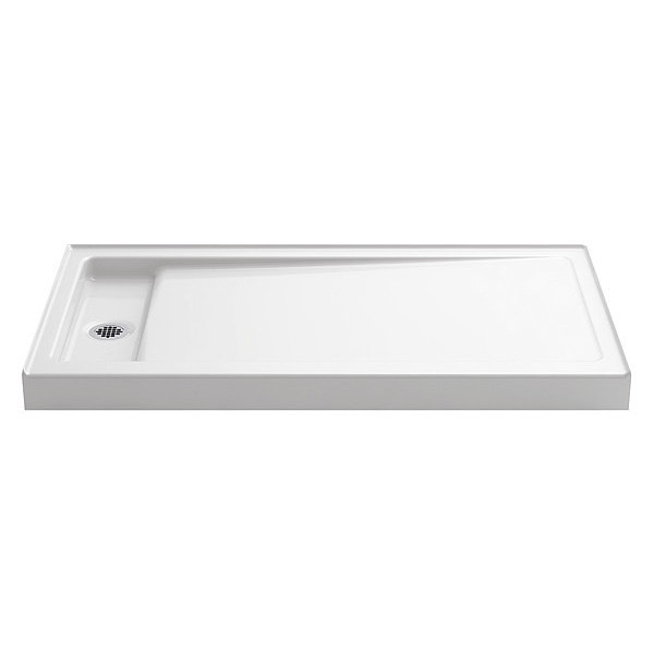 Shower Base, Base Height 4 1/2 in, Base Size 60 in x 32 in, White, Drain Connection 4 1/2 in, Drain Location Left, Floor Material Cast Iron, Floor Shape Rectangle, Kohler, Rough-In 6 1/2 in x 15 1/2 in, Bellwether Series, Shower Base, Threshold Height 4 1/2 in, Threshold Style Single