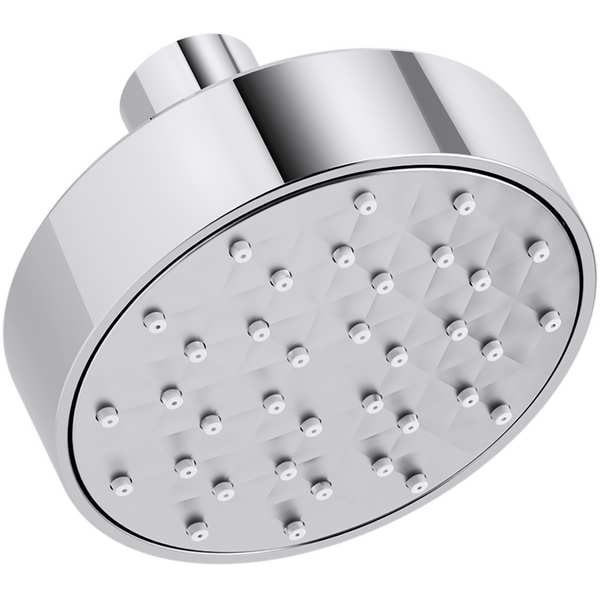 Fixed Showerhead, ADA Compliance No, CEC Compliant, Connection Size 1/2 in, NPT, Circle, Metal, Fixed Showerhead Flow Rate 1.75 gpm, Fixed Showerhead Thickness 2 5/8 in, Fixed Showerhead Width 3 5/8 in, Handheld Showerhead Flow Rate Not Applicable, Handheld Showerhead Thickness Not Applicable, Handheld Showerhead Width Not Applicable, Ligature Resistant No, Manufacturers Warranty Length 1 yr, Kohler, Awaken G90, 1/2 in NPT, Showerhead Function Single, Metal, Showerhead Shape Flat Circle