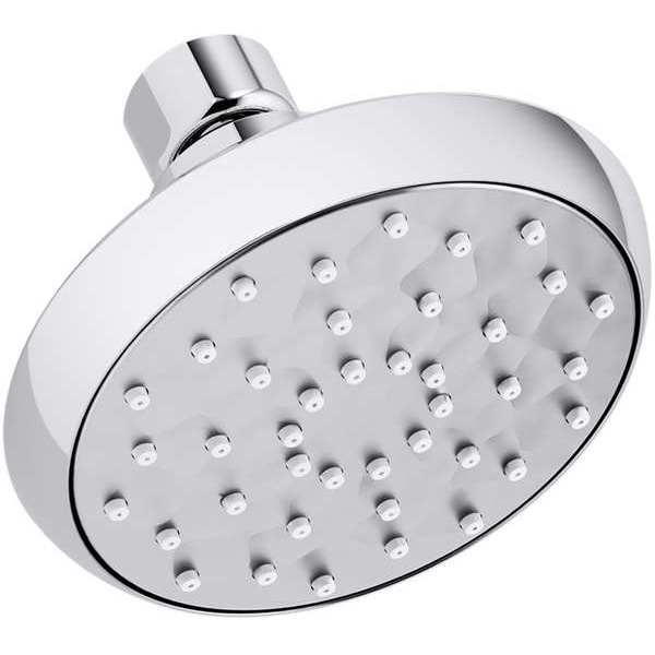 Fixed Showerhead, ADA Compliance No, CEC Compliant, Connection Size 1/2 in, NPT, Circle, Metal, Fixed Showerhead Flow Rate 1.75 gpm, Fixed Showerhead Thickness 2 5/8 in, Fixed Showerhead Width 3 3/4 in, Handheld Showerhead Flow Rate Not Applicable, Handheld Showerhead Thickness Not Applicable, Handheld Showerhead Width Not Applicable, Ligature Resistant No, Manufacturers Warranty Length 1 yr, Kohler, Awaken B90, 1/2 in NPT, Showerhead Function Single, Metal, Showerhead Shape Flat Circle
