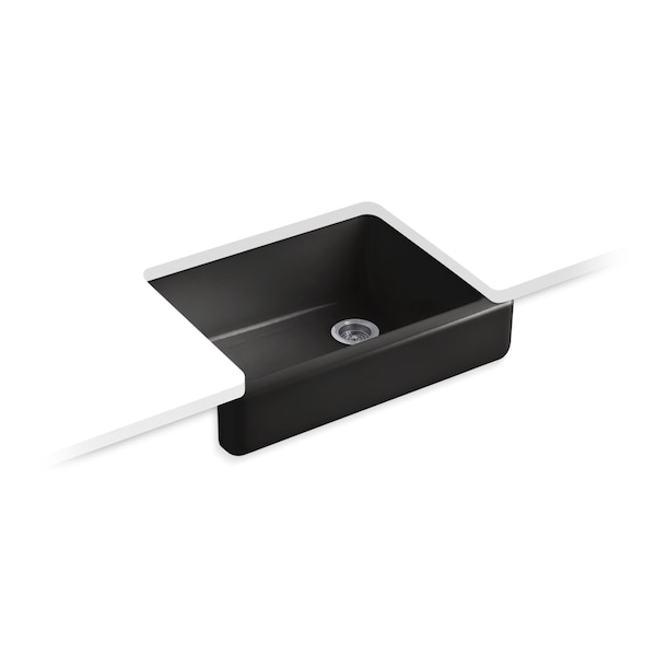 The Whitehaven apron-front kitchen sink features a streamlined and versatile farmhouse style. Perfect for remodeling projects, the Self-Trimming design requires only a rough cut to new or existing 30-inch standard cabinetry for simple installation and beautiful results. A large single basin accommodates large pots and pans, while the sloped bottom helps with draining and cleanup. Crafted from enameled cast iron, this sink resists chipping, cracking, or burning for years of beauty and reliable performance.