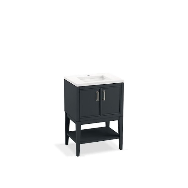 Timeless, simplistic pieces updated for the modern home, Winnow bathroom cabinets are at once familiar and different. Optional tall, tapered legs and symmetrical design are recognizably Shaker, while beveled door and drawer fronts and hardware with rounded corners deliver fresh details. The perfect balance of classic, elegant, and versatile, Winnow vanities come to life when you select your cabinet color. Cabinet, countertop, sink, legs, shelf, and Vibrant Brushed Nickel hardware are included with the set, which is ready for self-assembly on legs or wall. Additional hardware finishes are also available.