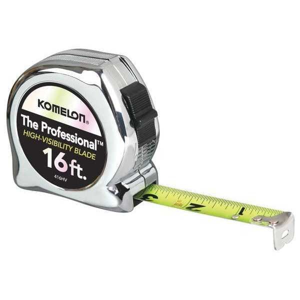 If you are looking for a high-quality tape measure, the Komelon 416HV 16 ft Tape Measure is what you need. The bright yellow blade will make it easy to find among your tools. With an ABS plastic case and steel blade, this tape measure has a 3/4 in. wide blade with graduations of 1/16". The lock type is slide and the measurements are SAE. The closed case has a chrome finish that protects against rust and corrosion. The Komelon Tape Measure is ideal for measuring long distances quickly and accurately.