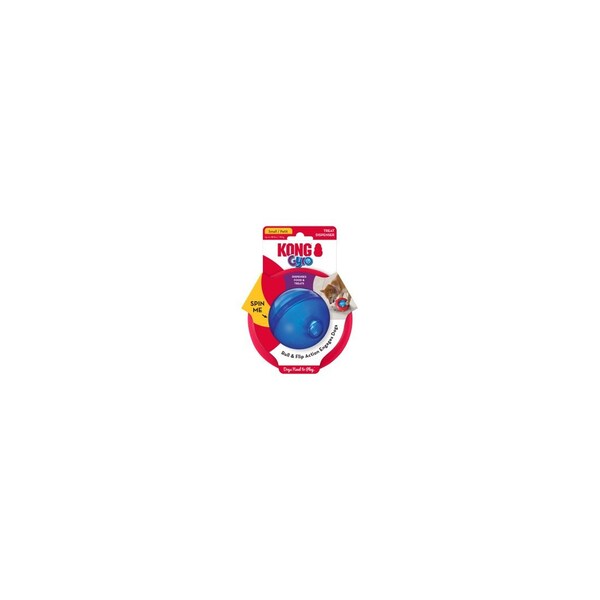 The KONG Gyro, small, is sure to entertain with irresistible roll and flip action keeping dogs enticed and intrigued. With the center spinning orb and static outer ring, this dynamic toy encourages dogs to push, paw and roll the GYRO, delightfully dispensing tasty treat rewards along the way. Ideal for independent play, stuff with snacks or kibble for added fun and extended playtime. Available in large and small sizes.