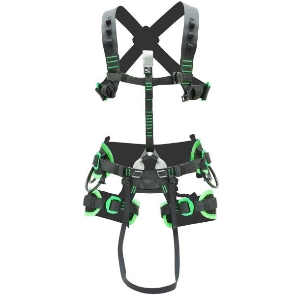 Newly developed harness for caving and rescue, designed to improve comfort and safety in rope progression. SPORT CE EN 12277 and WORK CE EN 813 CERTIFICATIONS which also allow use in the professional field or for rescue teams. The SMART chest harness can be integrated to form a complete FALL ARRESTER CE EN 361 harness that can be used in helicopter rescue operations, by caving rescue or canyon rescue teams. The SMART chest harness positions the chest ascender by means of retractable, adjustable webbing and is equipped with loops for carabiners. The sit harness and the chest harness are connected by an extension joint with a lark's foot knot. Main features: - wide ventral waist band and padded leg loops make it very comfortable during suspension, even when transporting heavy materials, thanks to the load distribution - the descender's main attachment point is raised compared to a classic caving harness, which keeps the body's centre of gravity in a lower position, improving sitting comfort and balance - conceived with the modern needs of exploratory caving in mind, it is also oriented for chimney climbing and subterranean ascent - the main belay loop allows the descender good torsional mobility, avoiding critical twisting that can occur between descenders and closing quick links - secondary attachment point for connecting a chest ascender: thanks to a webbing bridge sewn between the leg loops, the ascender is in a lower position - 4 large lateral tubular gear loops max load 10 kg - 4 belt transport loops offering a high attachment point for a tool bag when moving on unstable slopes or for carrying bolting bags max load 50 kg - barycentric sling attachment for bag transportation max load 50 kg. Easy to adjust and replace, with two hanging points according to the user's ergonomics - padding made of strong nylon to withstand abrasion in meanders and bottlenecks - sturdy buckles that can be easily adjusted using a looped piece of cord - elastic retaining straps in the leg loops which are easy to replaceHigh quality product, completely