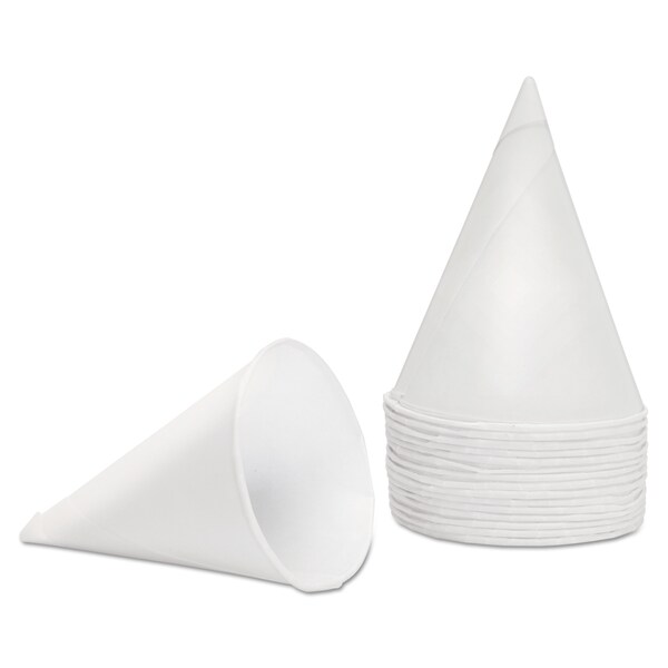 KonieĀ® Rolled Rim, Poly Bagged Paper Cone Cups, 4.5oz, White, 5000/Carton