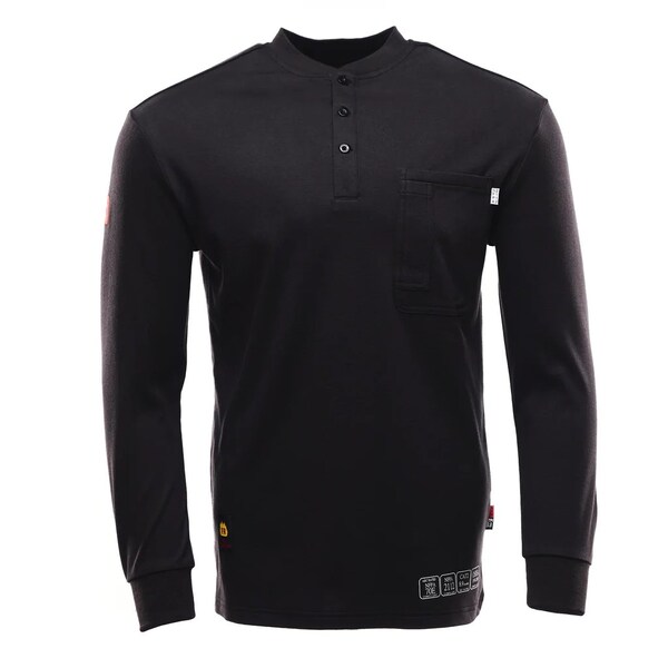 Henley Long Sleeve Shirt Big chest pocket with Hook And Loop closure and separate pencilpocket 100 cotton, soft quality, 65ozyd2ATPV 89 calcm2 CAT2ULCertified,NFPA 2112 and NFPA 70E compliantPrewashed materials ensure low shrinkageHenley collar with threebutton openingTagless neck for improved wearing comfortRib at sleeve cuffs