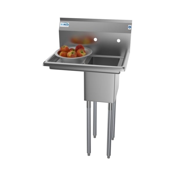 1 Compartment Stainless Steel NSF Commercial Kitchen Prep & Utility Sink with Drainboard