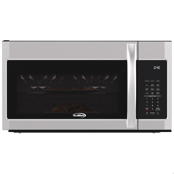 Heat Up Food Quickly and Efficiently with the KoolMore Over Range Microwave Oven While everyone needs a stove and oven one of the most useful appliances in any kitchen is the microwave. But when you need to save valuable counter space without giving up the microwave Nothing beats this quality Over the Range Microwave Oven. Designed to fit seamlessly over your stove this high-powered, easily programmable unit lets you cook, reheat, and defrost food more effortlessly. And all while maintaining a clean cooking environment ideal for meat, veggies, and all those snacks you love so much. Pull-Handle Door A more ergoNomic, pull handle door with an accessible design that allows you to pull open or shut the door more effectively for better long-term operational use. Boasting 1000-watts of premium power to help you cook everything from Popcorn to Hot Pockets or delicious bowls of soup. Features: 11 Power Levels 6 Pre-Programmed Auto Cook Options 30-Second Express Cooking Kitchen Timer/Clock Weight and Time Defrost 300 CFM Recirculating Vent Hood Function and Oven Lamp Child Lockout Feature Fingerprint Resistant