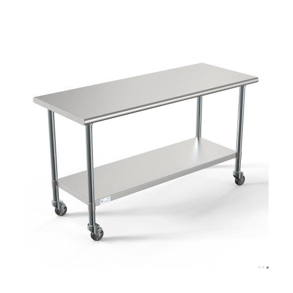 24'' x 60'' 18-Gauge 304 Stainless Steel Commercial Work Table with Casters