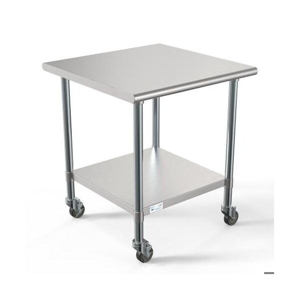 30'' x 30'' 18-Gauge 304 Stainless Steel Commercial Work Table with Casters