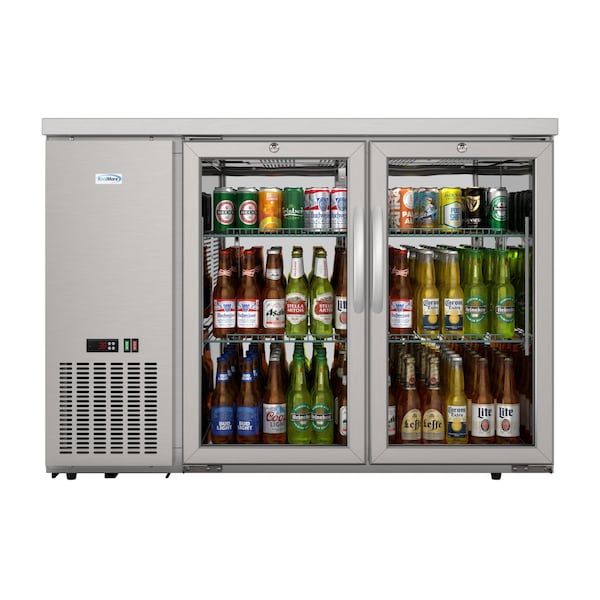 47in Commercial Back Bar Cooler in Silver With Side Condenser and LED Lighting, 11 Cu. Ft Capacity